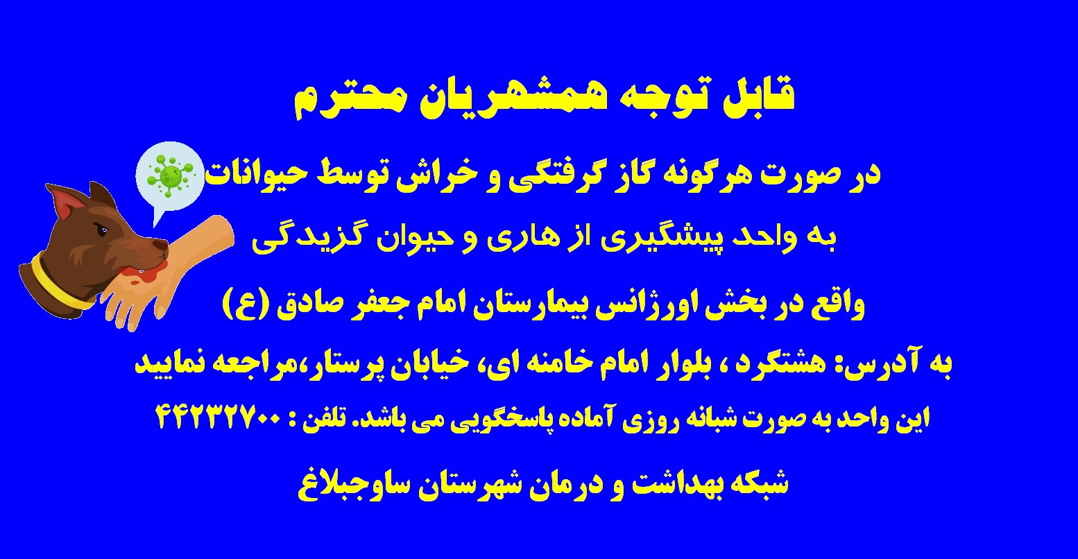 معرفی واحد شبانه روزی پیشگیری از هاری و حیوان گزیدگی شهرستان ساوجبلاغ